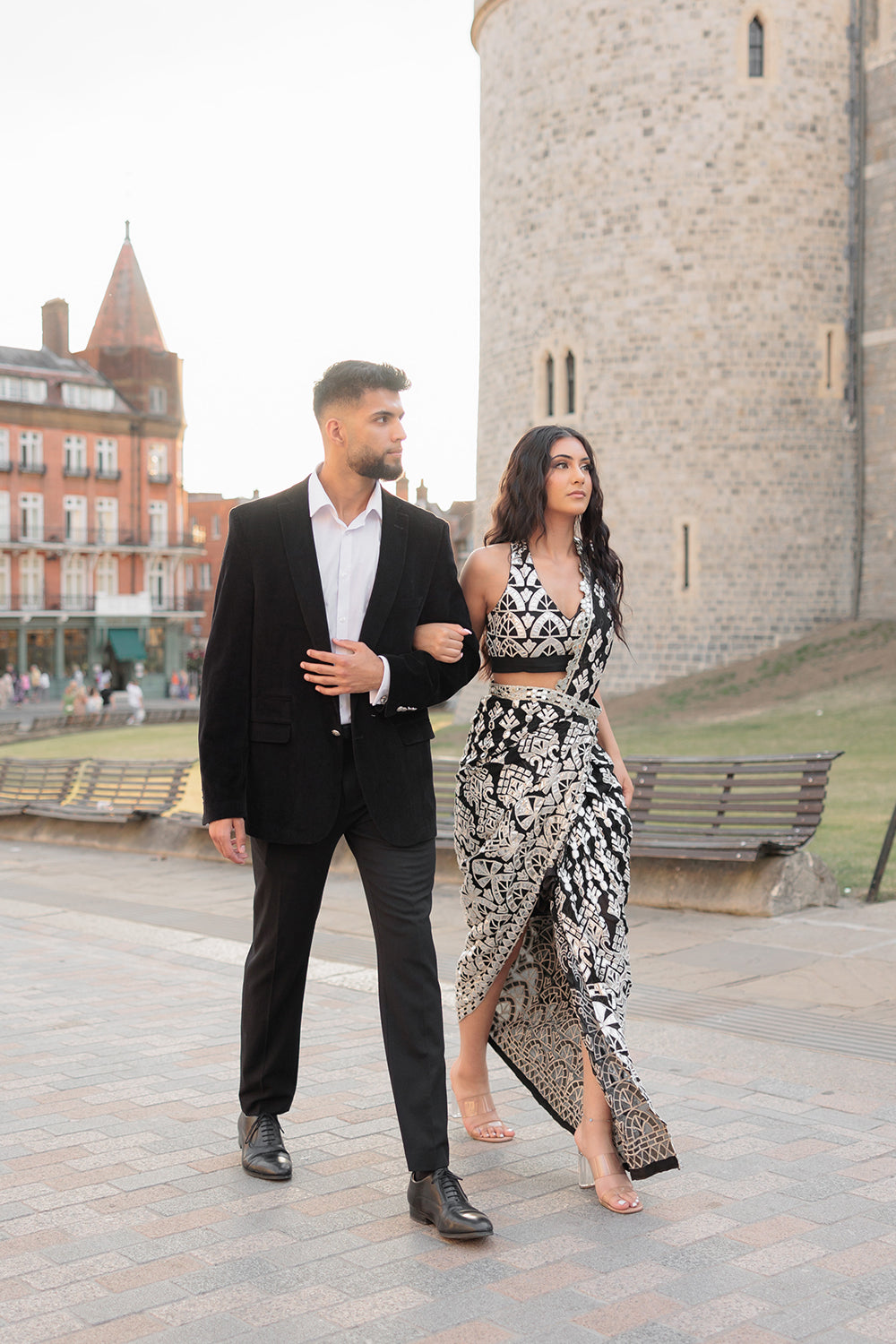 This foil black georgette drape saree is the epitome of elegance and sophistication, perfect for any cocktail or sangeet event. The saree features a stunning drape that flows effortlessly, creating a classic and chic silhouette. Its subtle shimmer adds a touch of glamour, making it a true showstopper outfit that guarantees to turn heads.