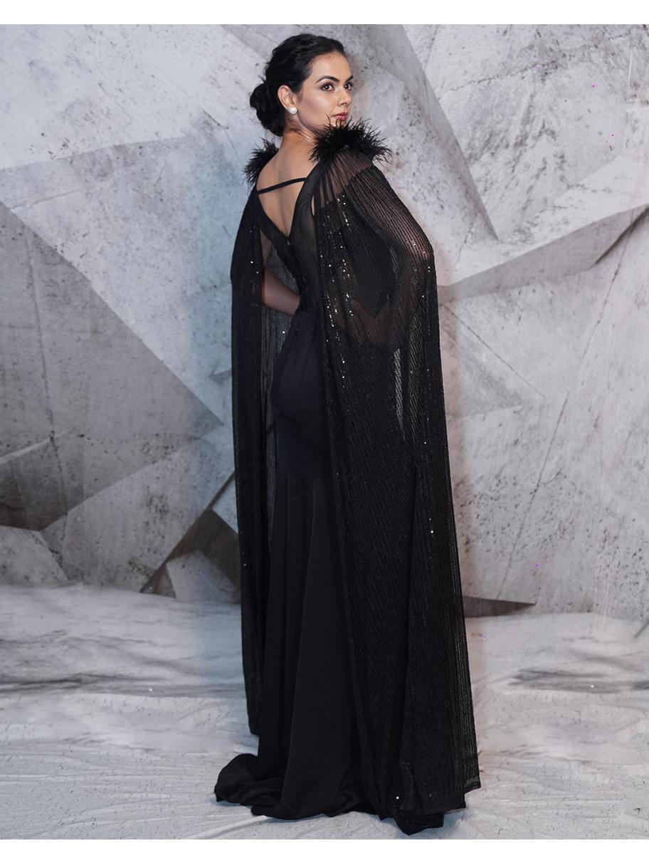 Enveloped between the bold hues of black and glittering sequins work lies this gown. The gown is...