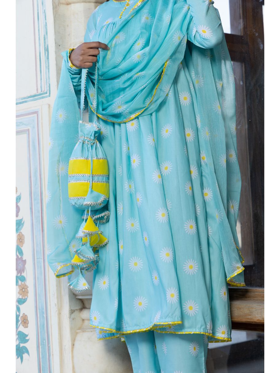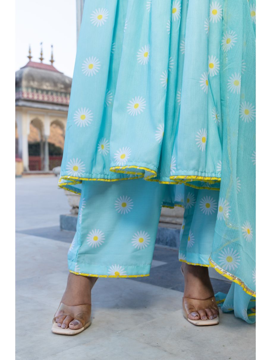 Pomcha Jaipur - DAYLILLY BLUE MUSLIN ANARKALI SET