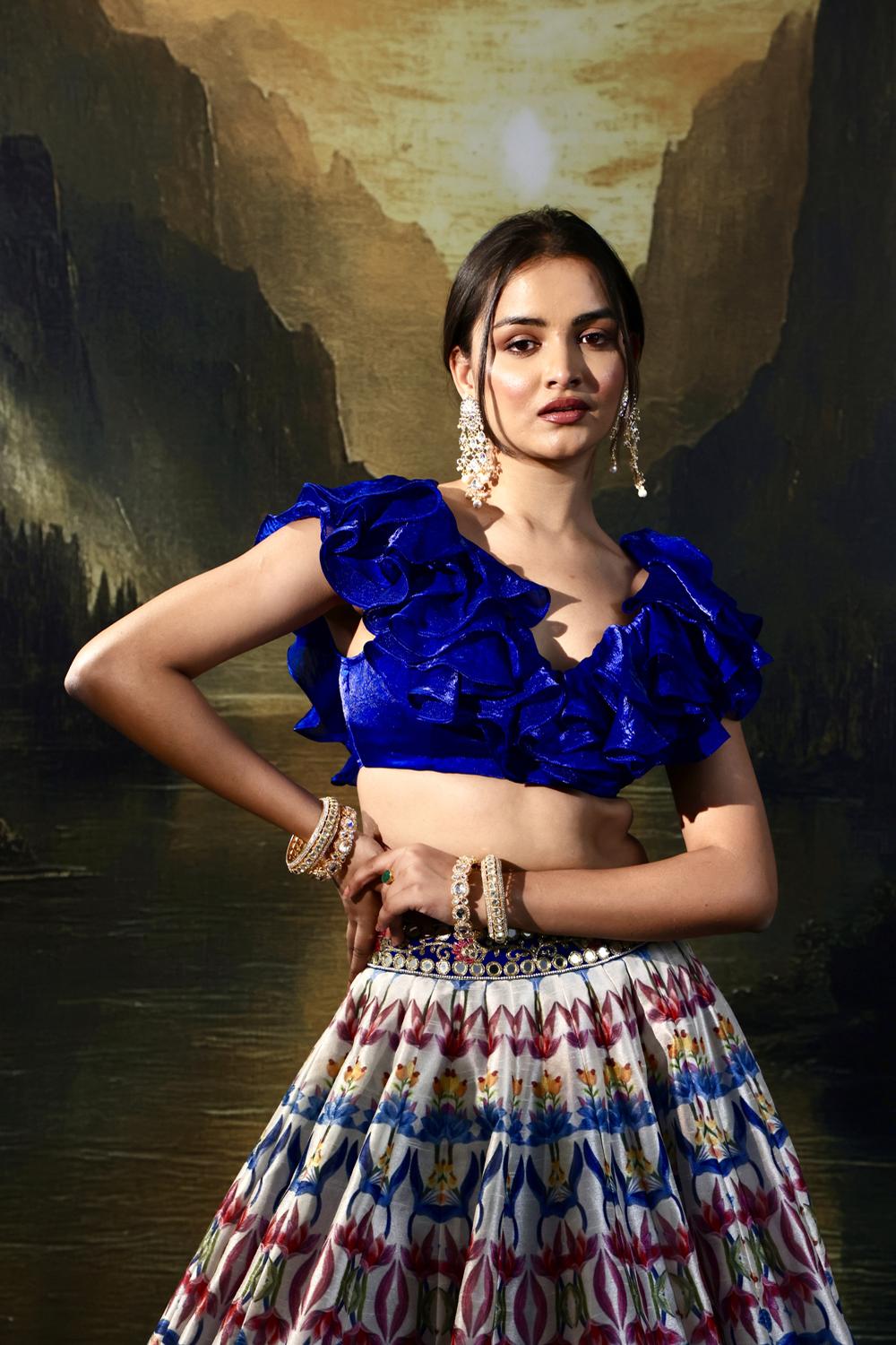 Fabric: LEHENGA: SILK,   BLOUSE : SATIN ORGANZA,  LINING: SHANTOON